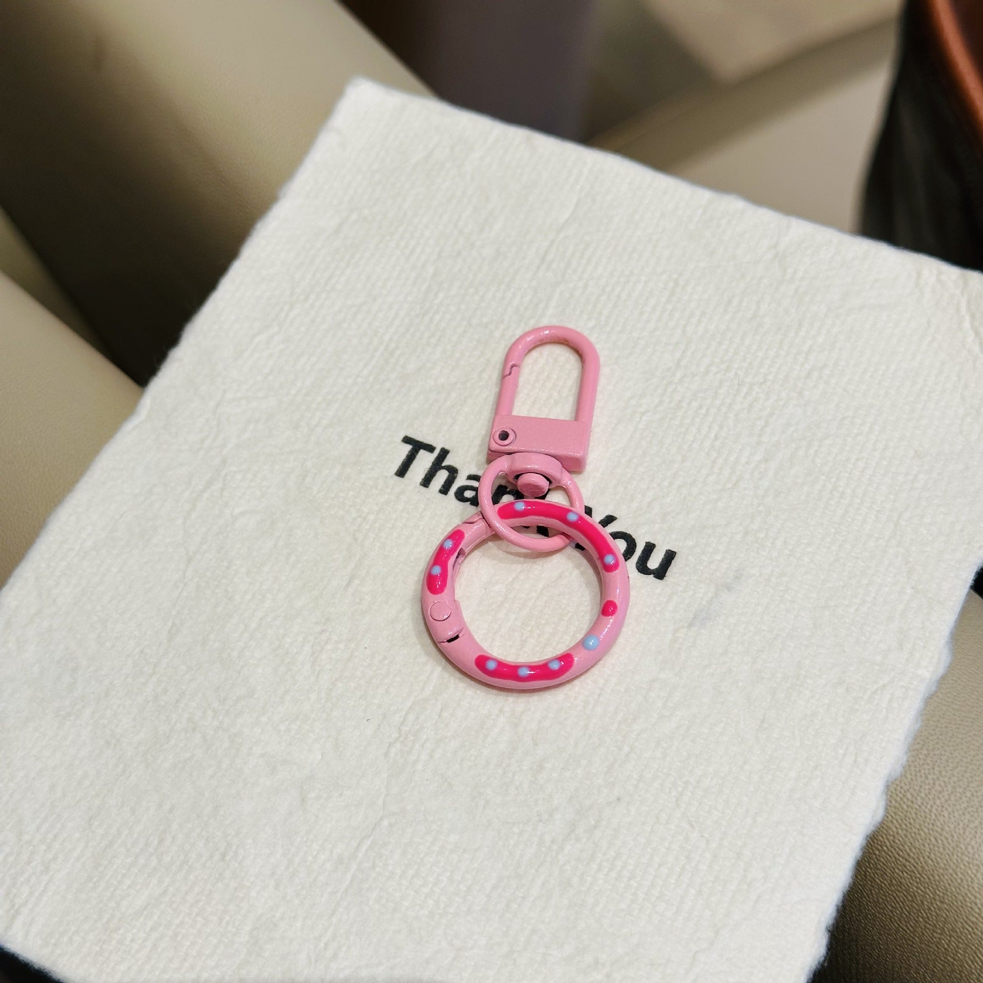 Candy Colored Hand Painted Donut Buckle Keychain | Dark Pink