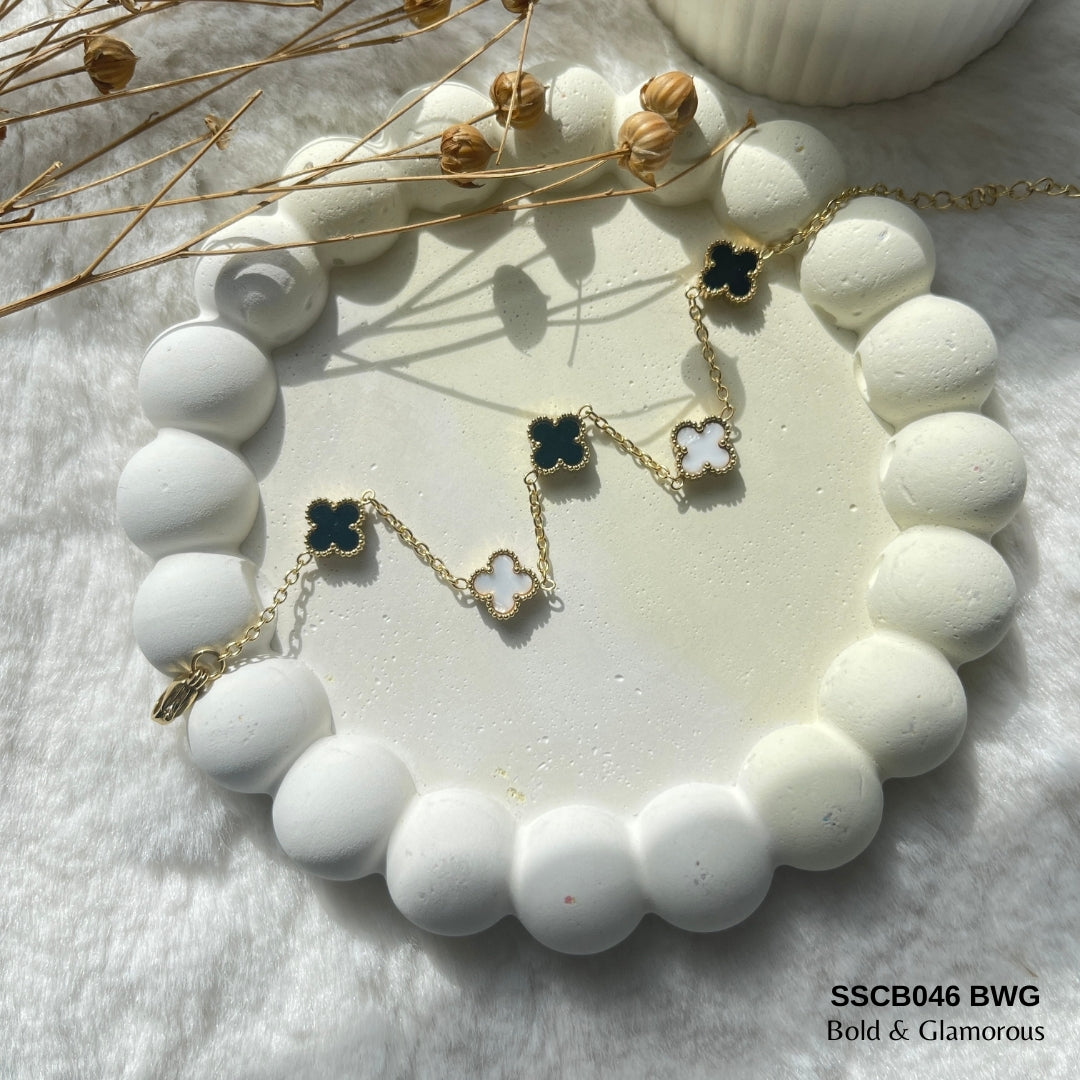 Chain Bracelet | SSCB046 | Clover - Black White Gold