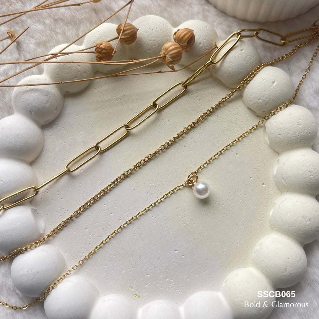 Chain Bracelet | SSCB065 | 3 Layered with a Pearl