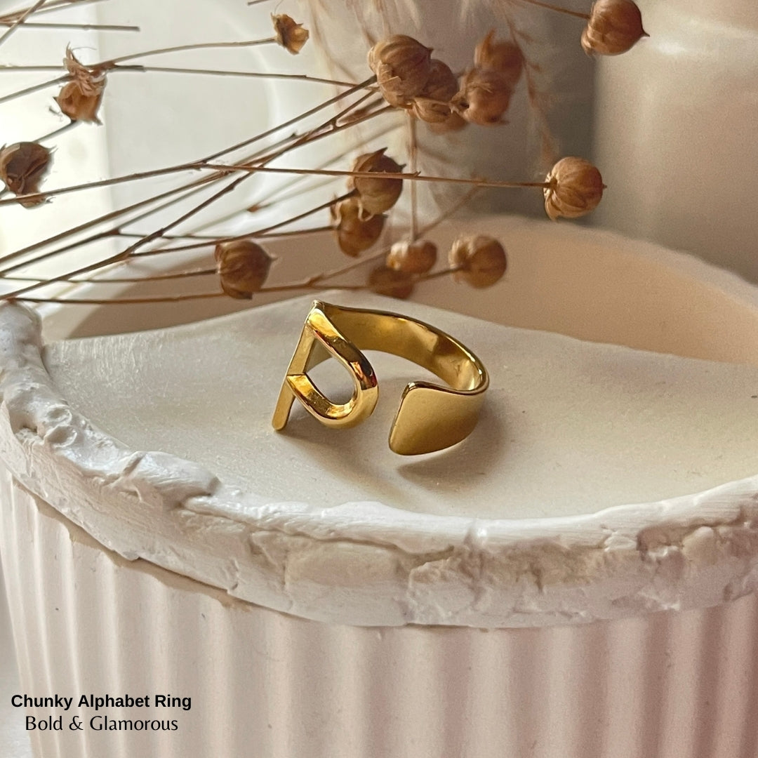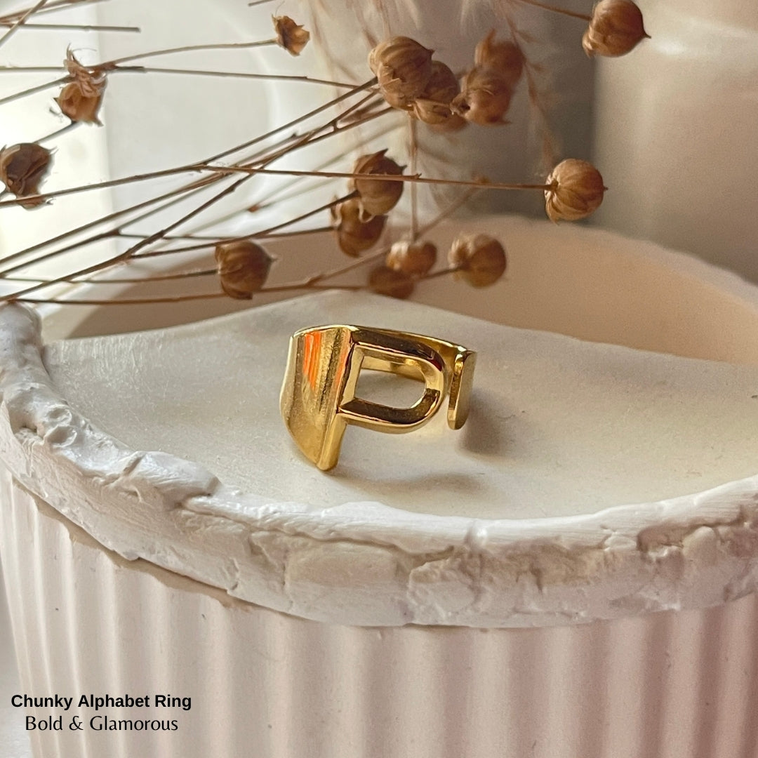 Chunky Alphabet Ring | P | Gold (BIG SIZE)