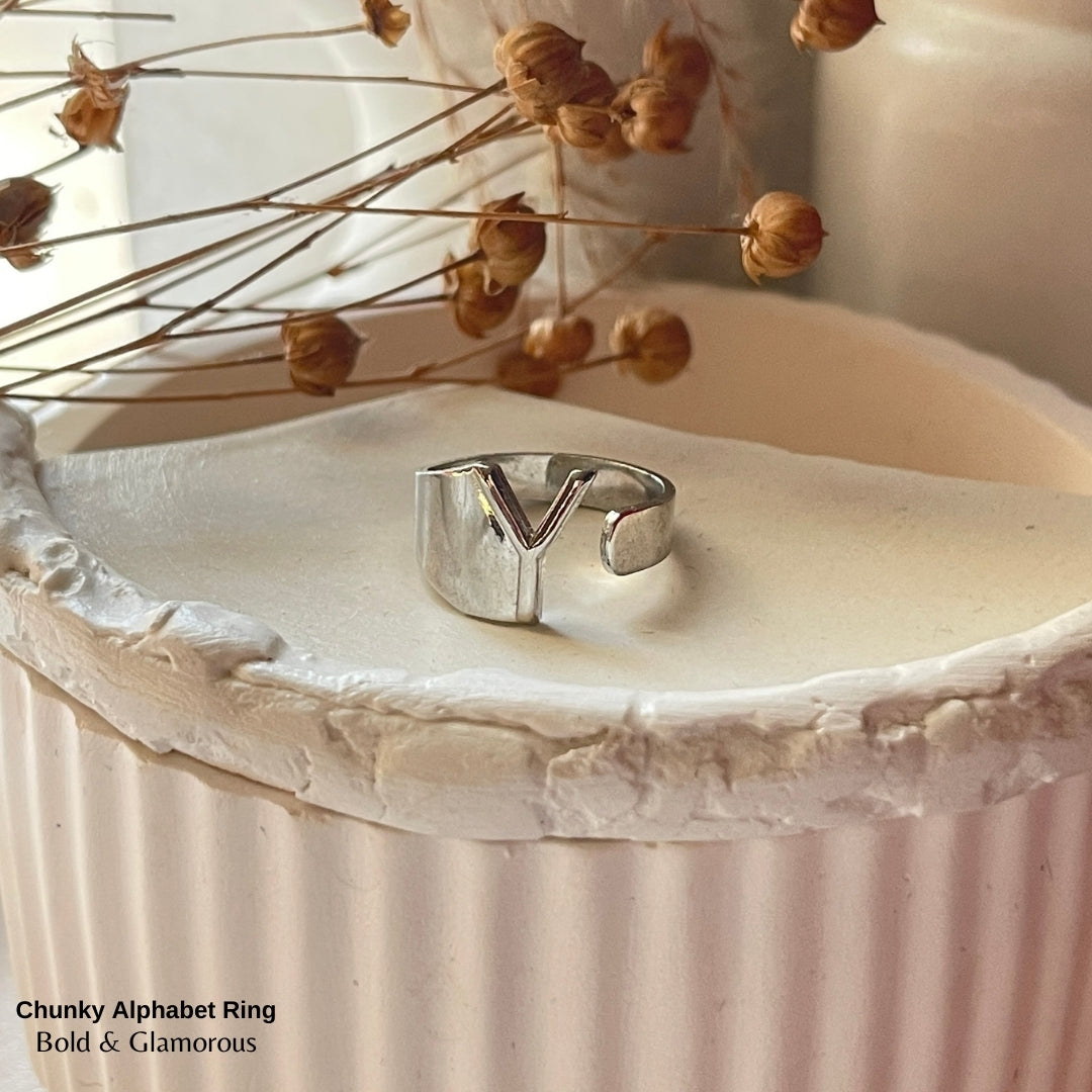 Chunky Alphabet Ring | Y | Silver