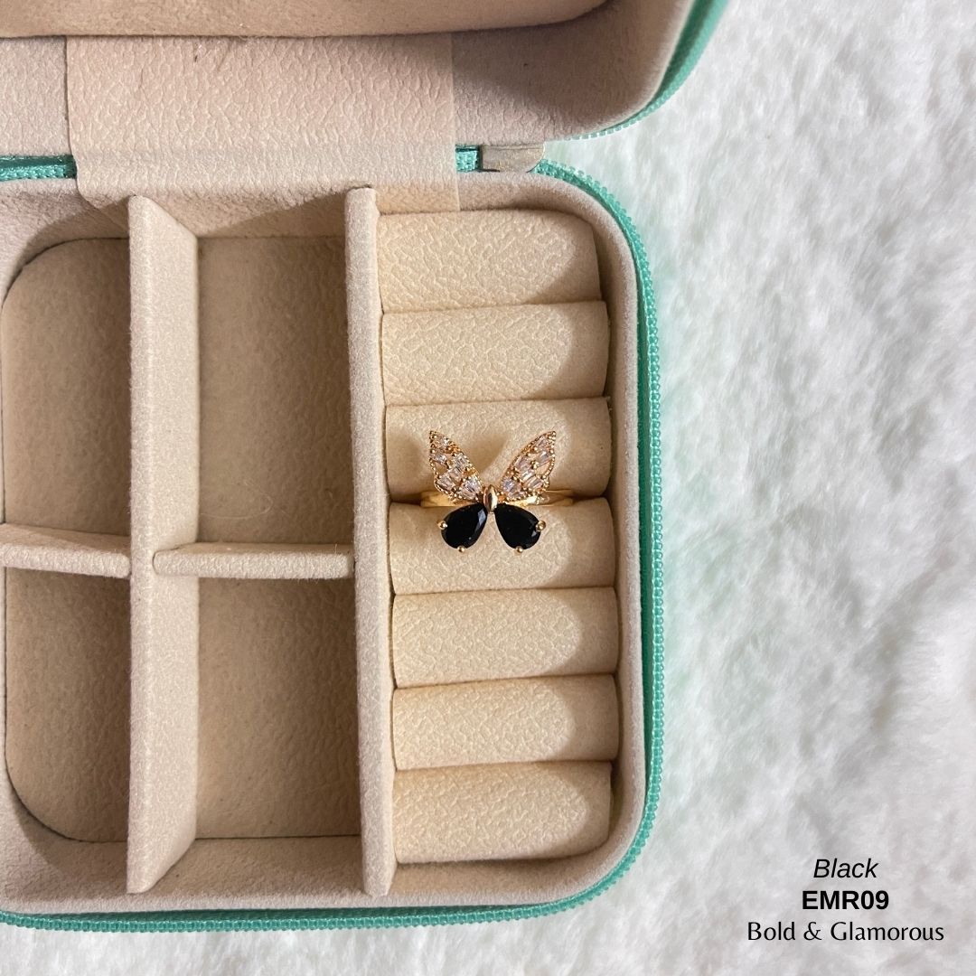 Diamond Cut Butterfly Ring | EMR09 | Black