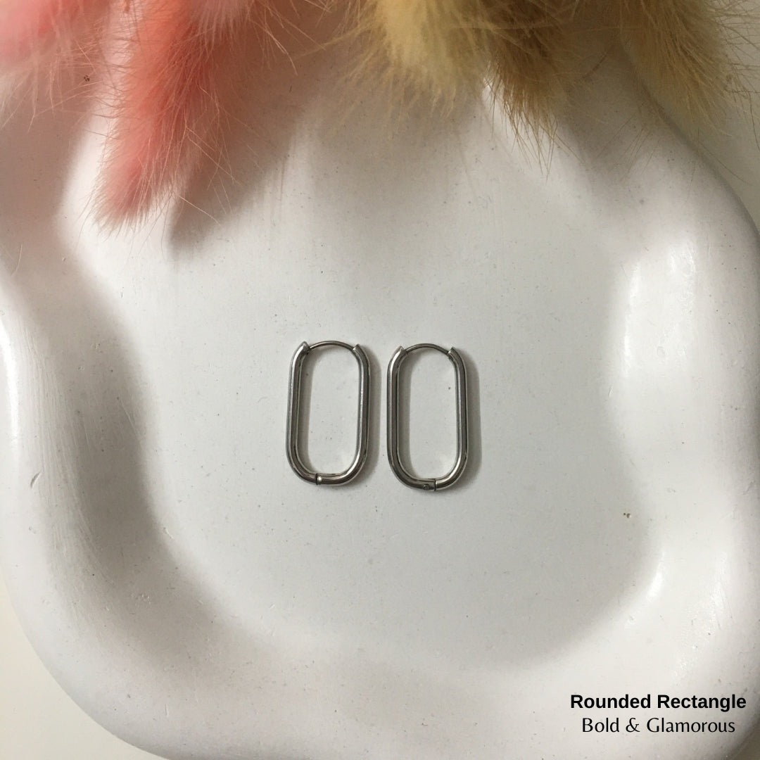 Shape Hoop Earring | Rounded Rectangle | Silver