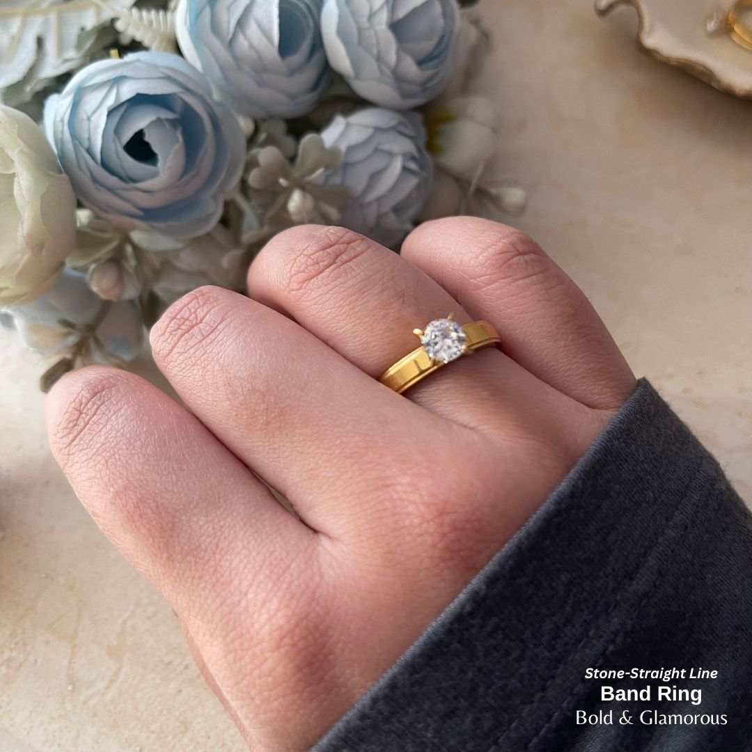 SS Finger Ring | SS01 | Stone-Straight Line Band