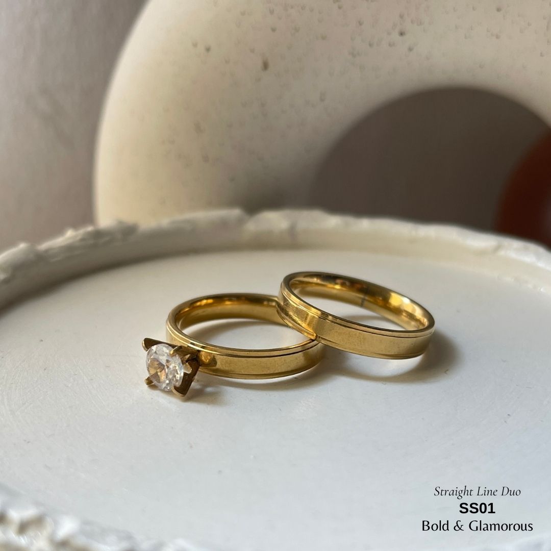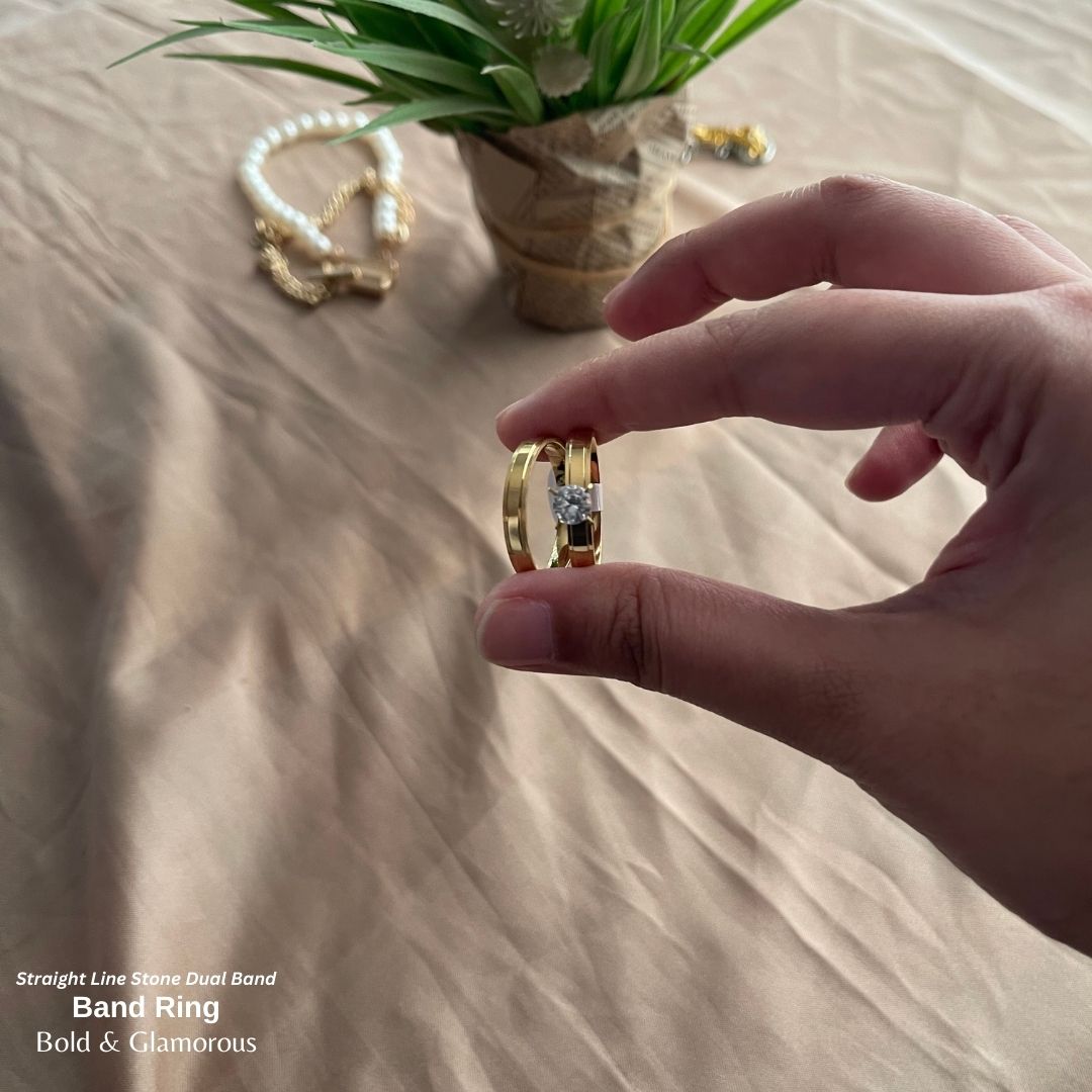 SS Finger Ring | SS01 | Stone-Straight Line Band Duo