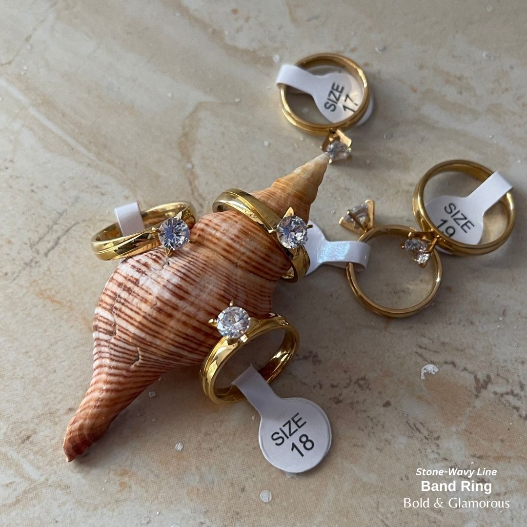 SS Finger Ring | SS01 | Stone-Wavy Band