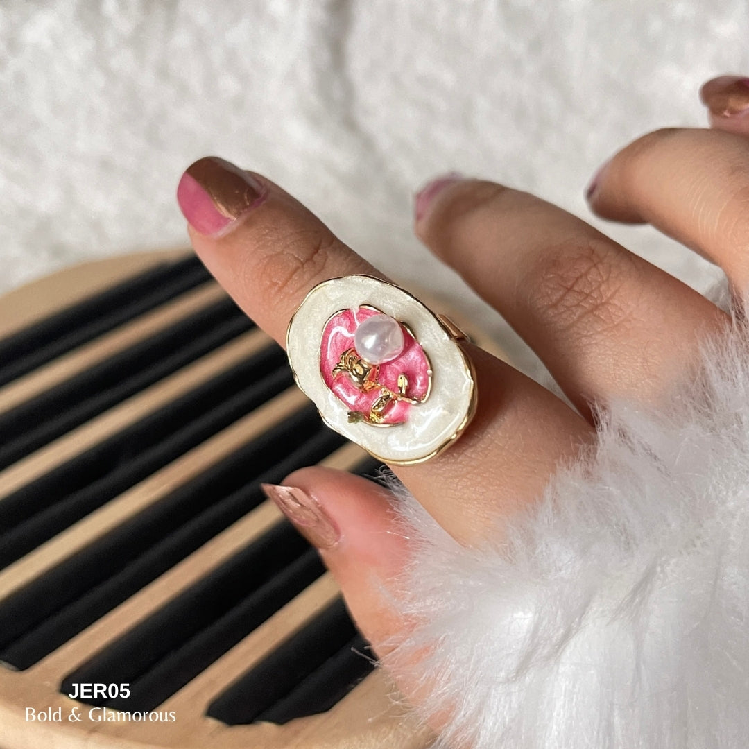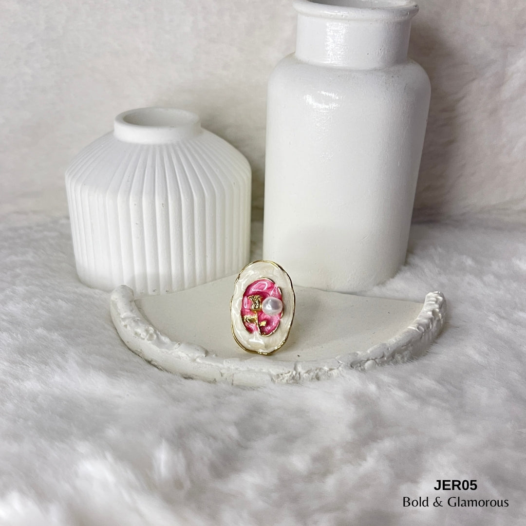 Vintage Oil Drop Ring | JER005 | White Pink